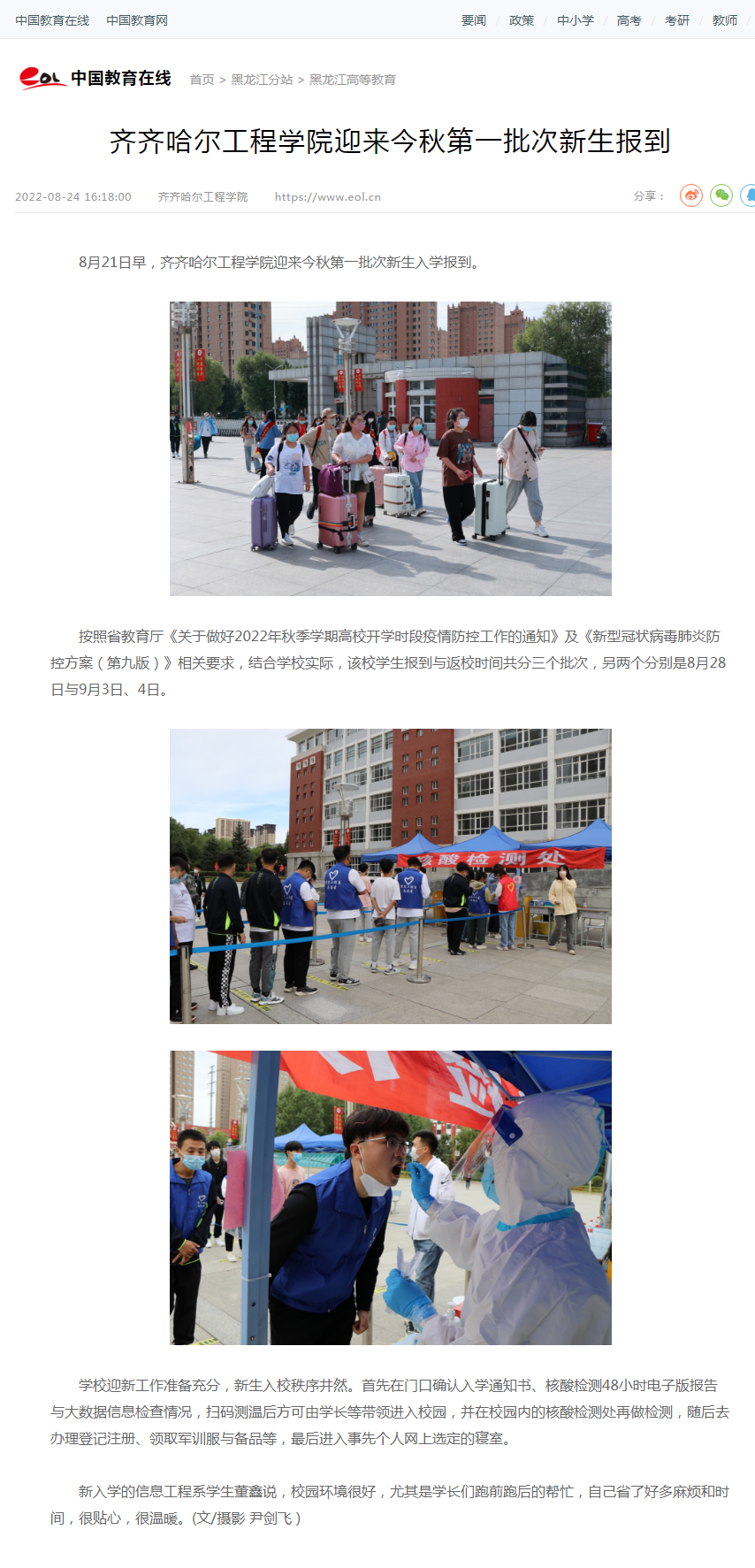 中国教育在线:开云kaiyun官方网站迎来今秋第一批次新生报到