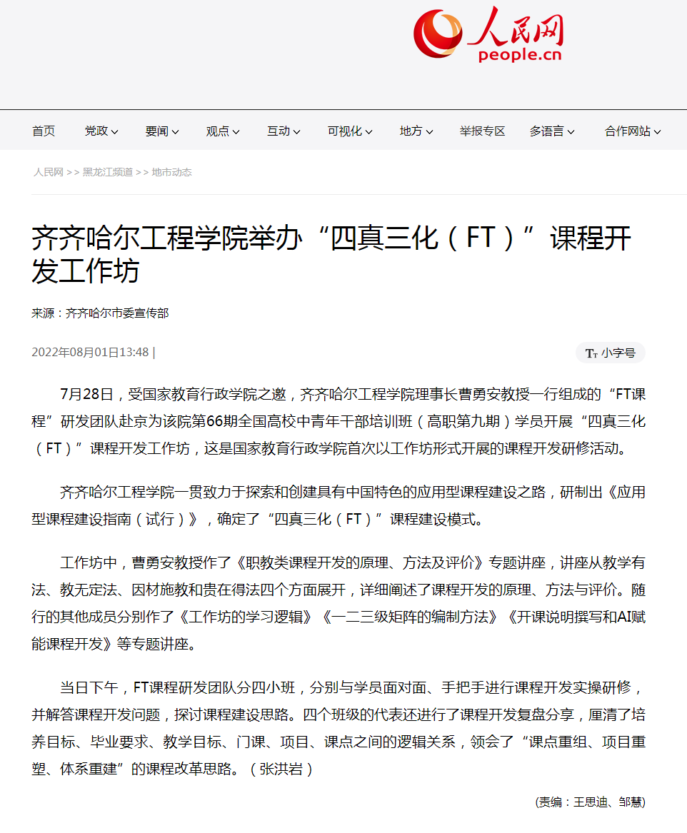 人民网:开云kaiyun官方网站举办“四真三化(FT)”课程开发工作坊