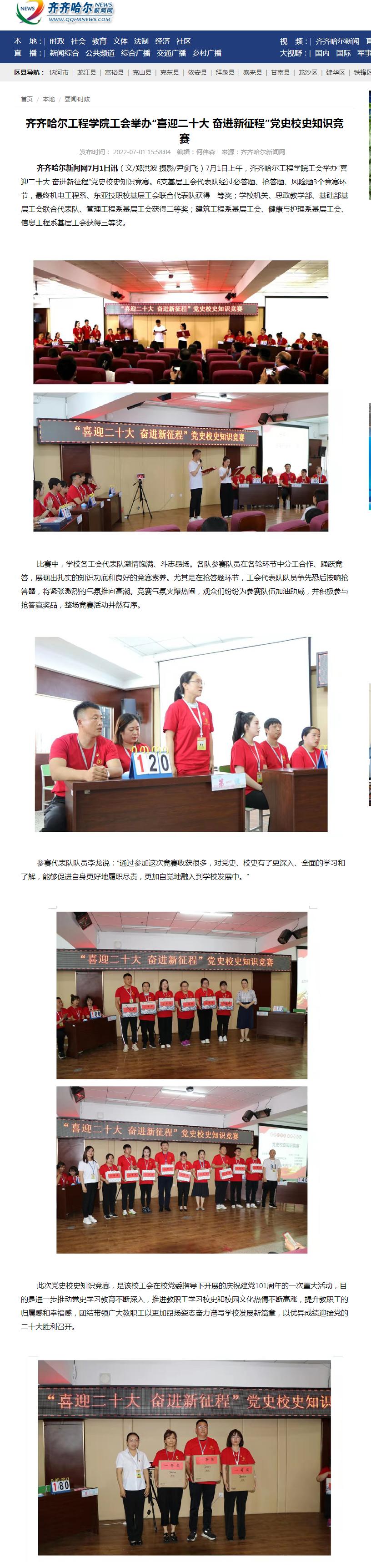 齐齐哈尔新闻网:开云kaiyun官方网站工会举办“喜迎二十大 奋进新征程”党史校史知识竞赛