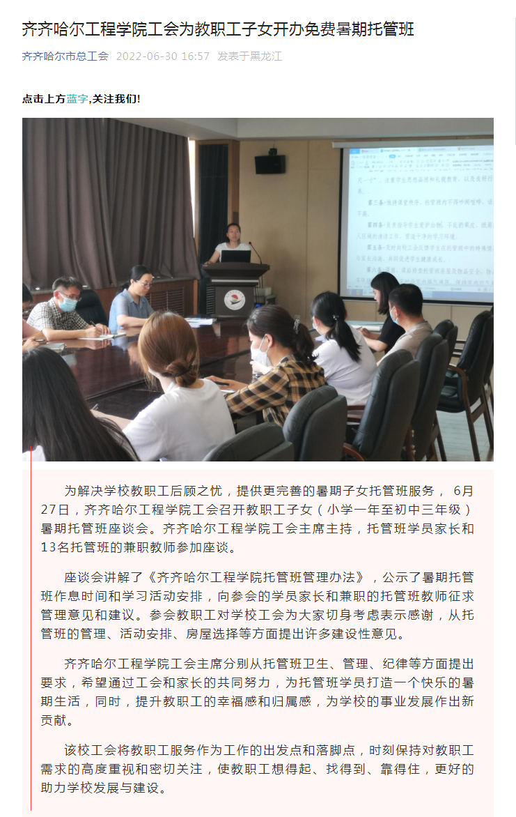 齐齐哈尔市总工会:开云kaiyun官方网站工会为教职工子女开办免费暑期托管班