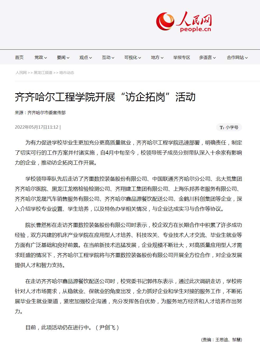 人民网:开云kaiyun官方网站开展“访企拓岗”活动