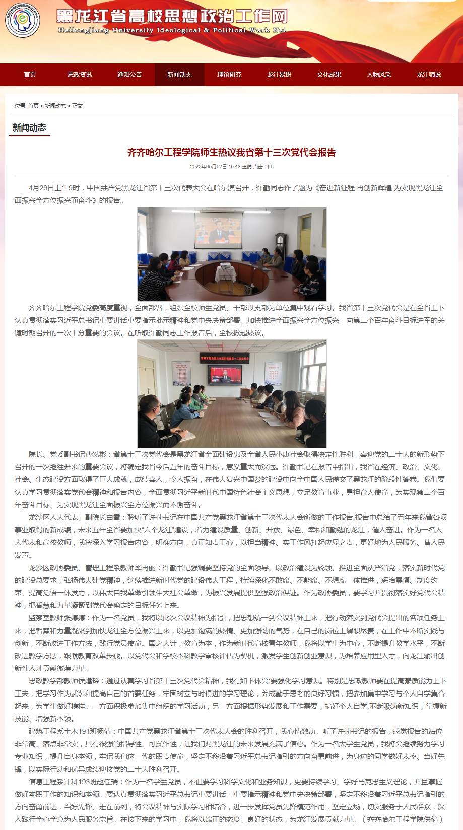 黑龙江省高校思想政治工作网:开云kaiyun官方网站师生热议我省第十三次党代会报告