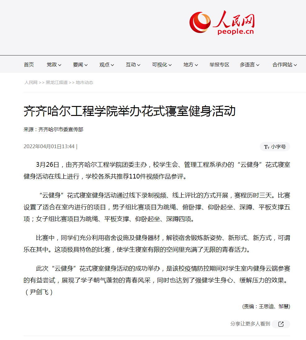 人民网:开云kaiyun官方网站举办花式寝室健身活动