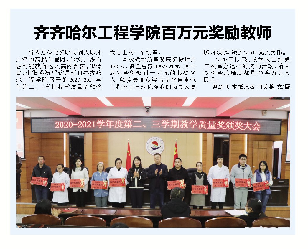 齐齐哈尔日报:开云kaiyun官方网站百万元奖励教师