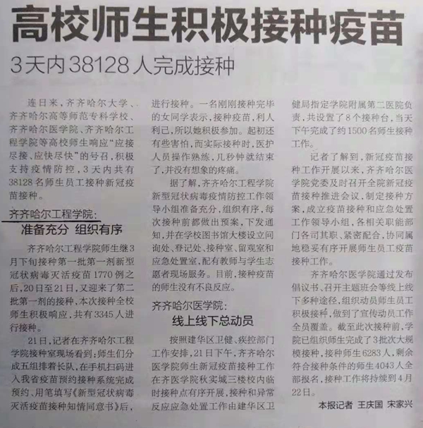 鹤城晚报报道开云官网接种疫苗“准备充分 组织有序”