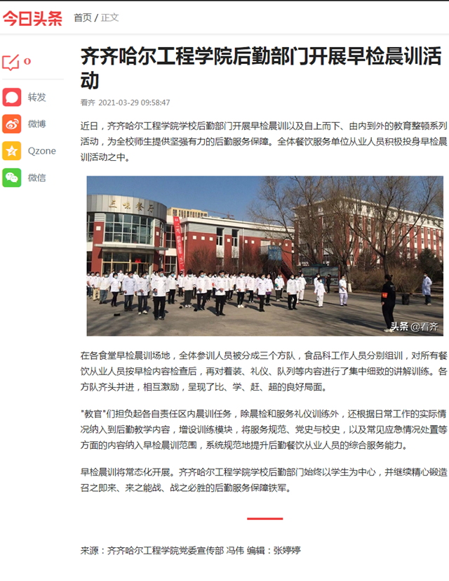 今日头条:开云kaiyun官方网站后勤部门开展早检晨训活动