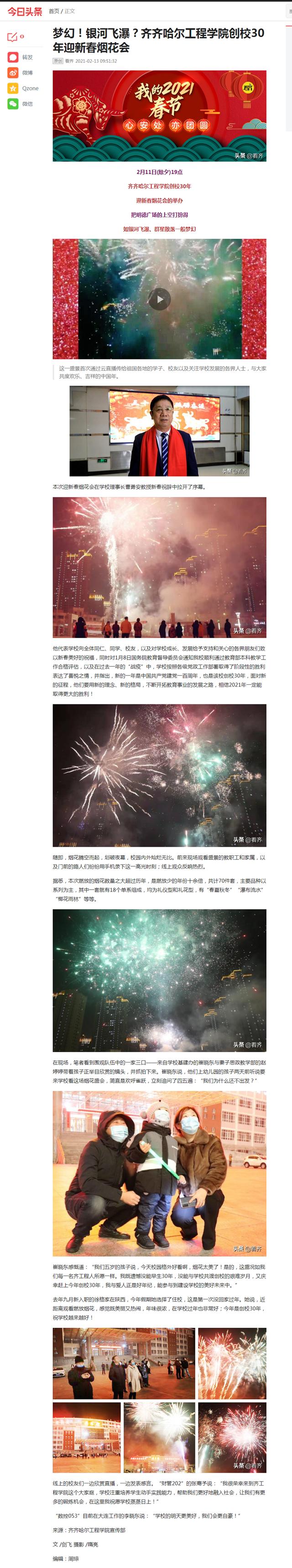 今日头条:梦幻!银河飞瀑?开云kaiyun官方网站创校30年迎新春烟花会