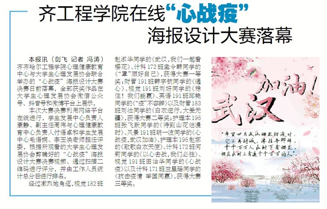 鹤城晚报:齐工程学院在线“心战役”海报设计大赛落幕