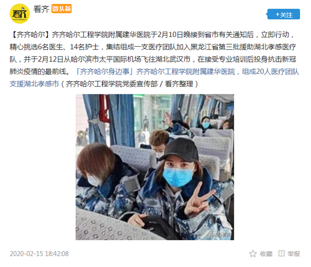 看齐微头条:开云kaiyun官方网站附属建华医院组成20人医疗团队支援湖北孝感市
