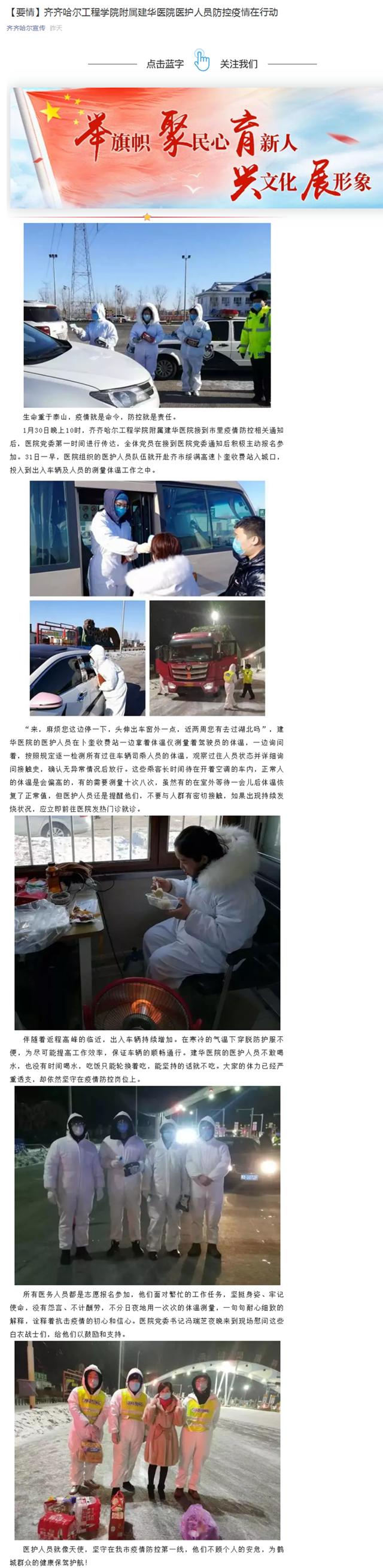 齐齐哈尔宣传《要情》:开云kaiyun官方网站附属建华医院医护人员防控疫情在行动