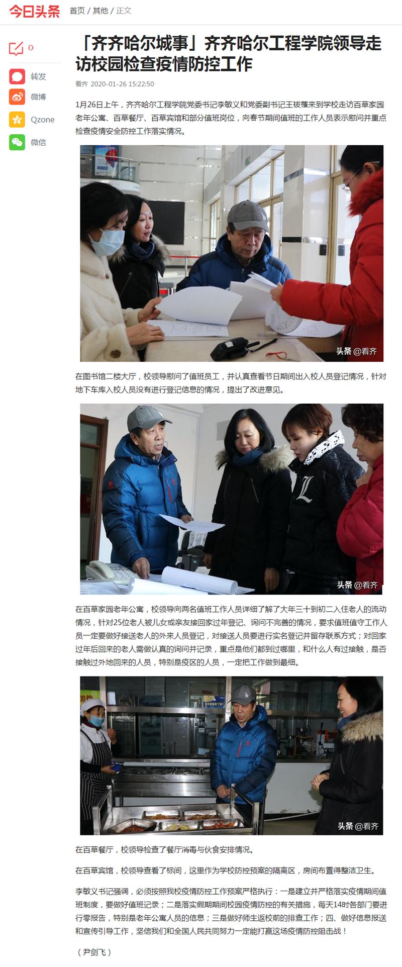 今日头条《齐齐哈尔城事》:开云kaiyun官方网站领导走访校园检查疫情防控工作