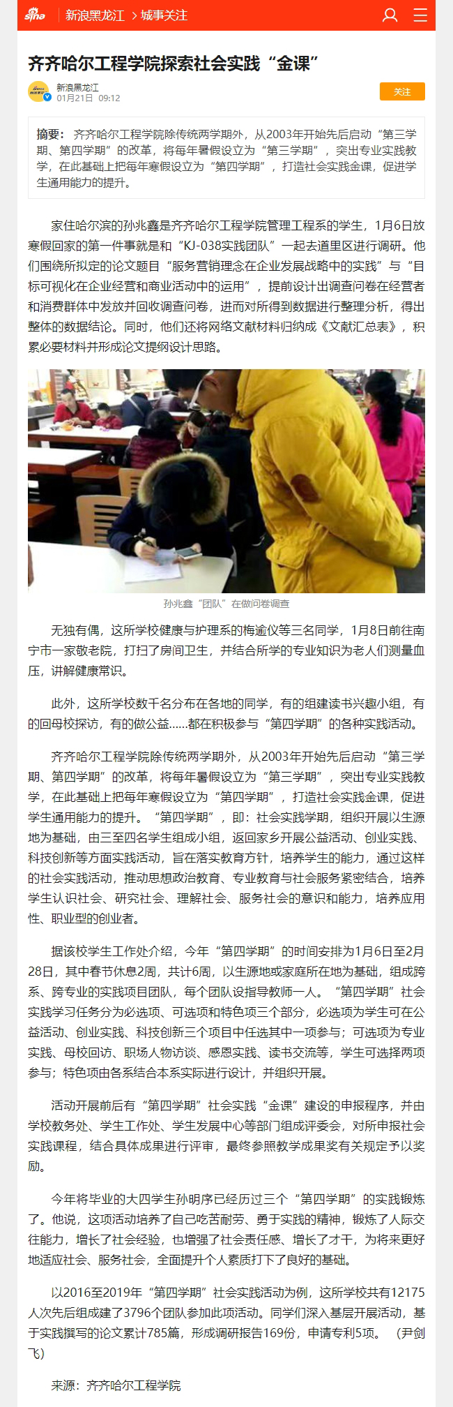 新浪黑龙江:开云kaiyun官方网站探索社会实践“金课”