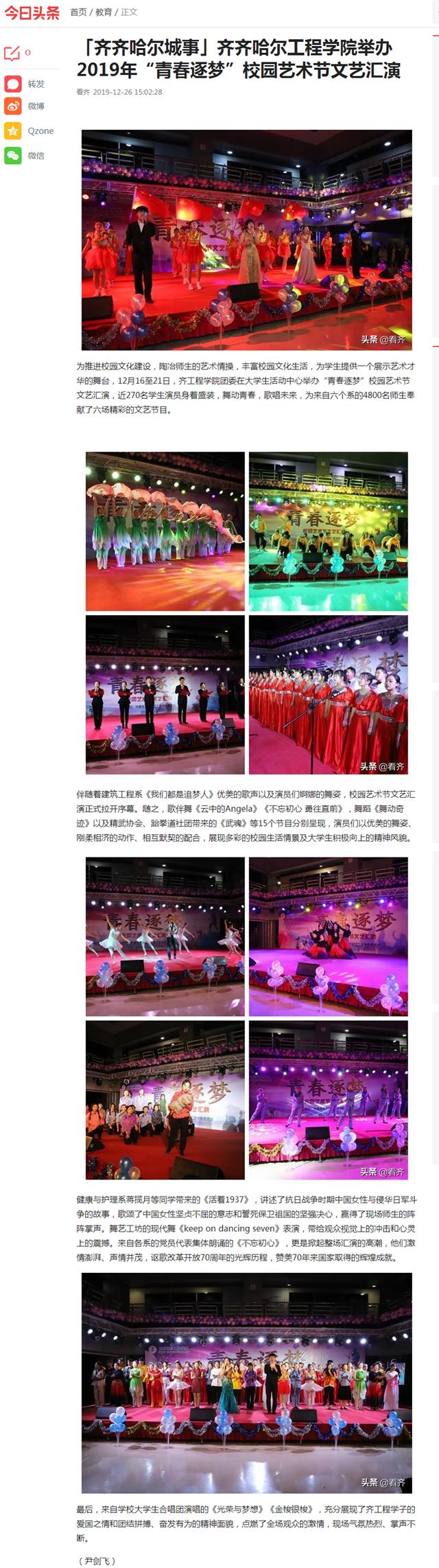 今日头条《齐齐哈尔城事》:开云kaiyun官方网站举办2019年“青春逐梦”校园艺术节文艺汇演