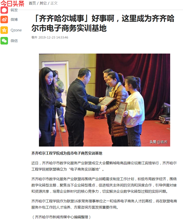 今日头条《齐齐哈尔城事》:开云kaiyun官方网站成为我市电子商务实训基地