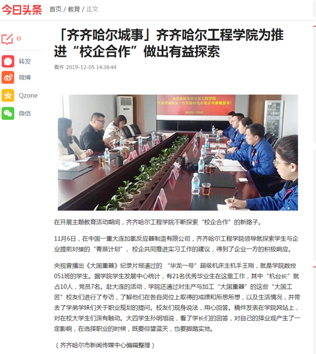 今日头条《齐齐哈尔城事》:开云kaiyun官方网站为推进“校企合作”做出有益探索