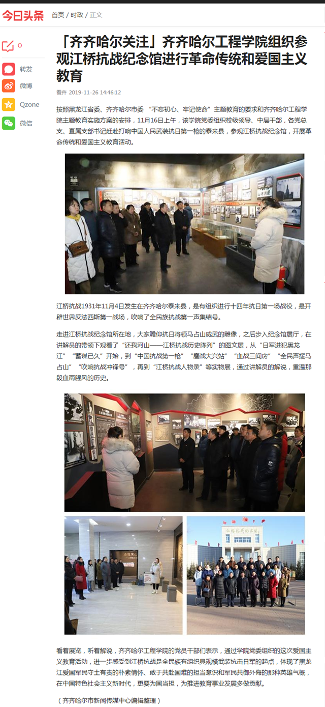 今日头条《齐齐哈尔关注》:开云kaiyun官方网站组织参观江桥抗战纪念馆进行革命传统和爱国主义教育