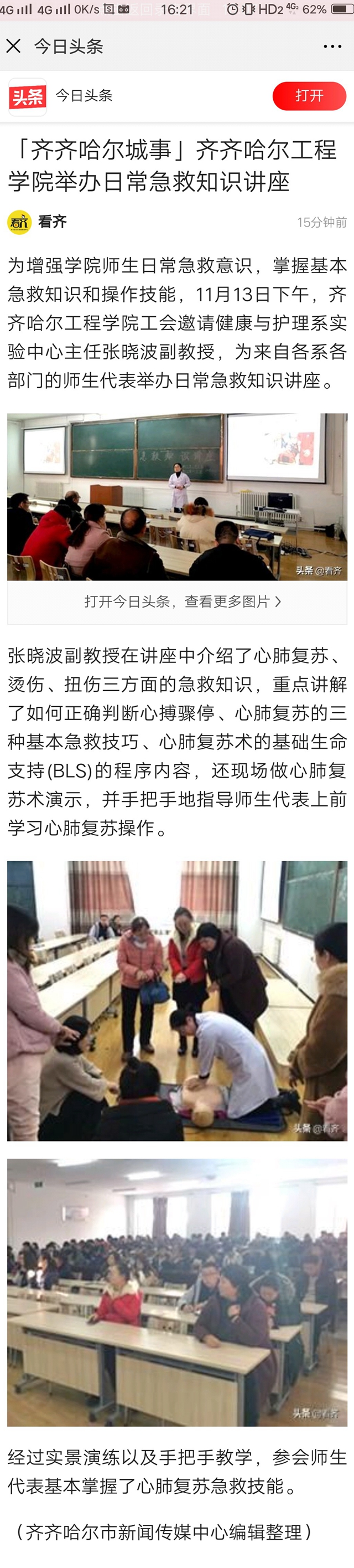 今日头条《齐齐哈尔城事》:开云kaiyun官方网站举办日常急救知识讲座