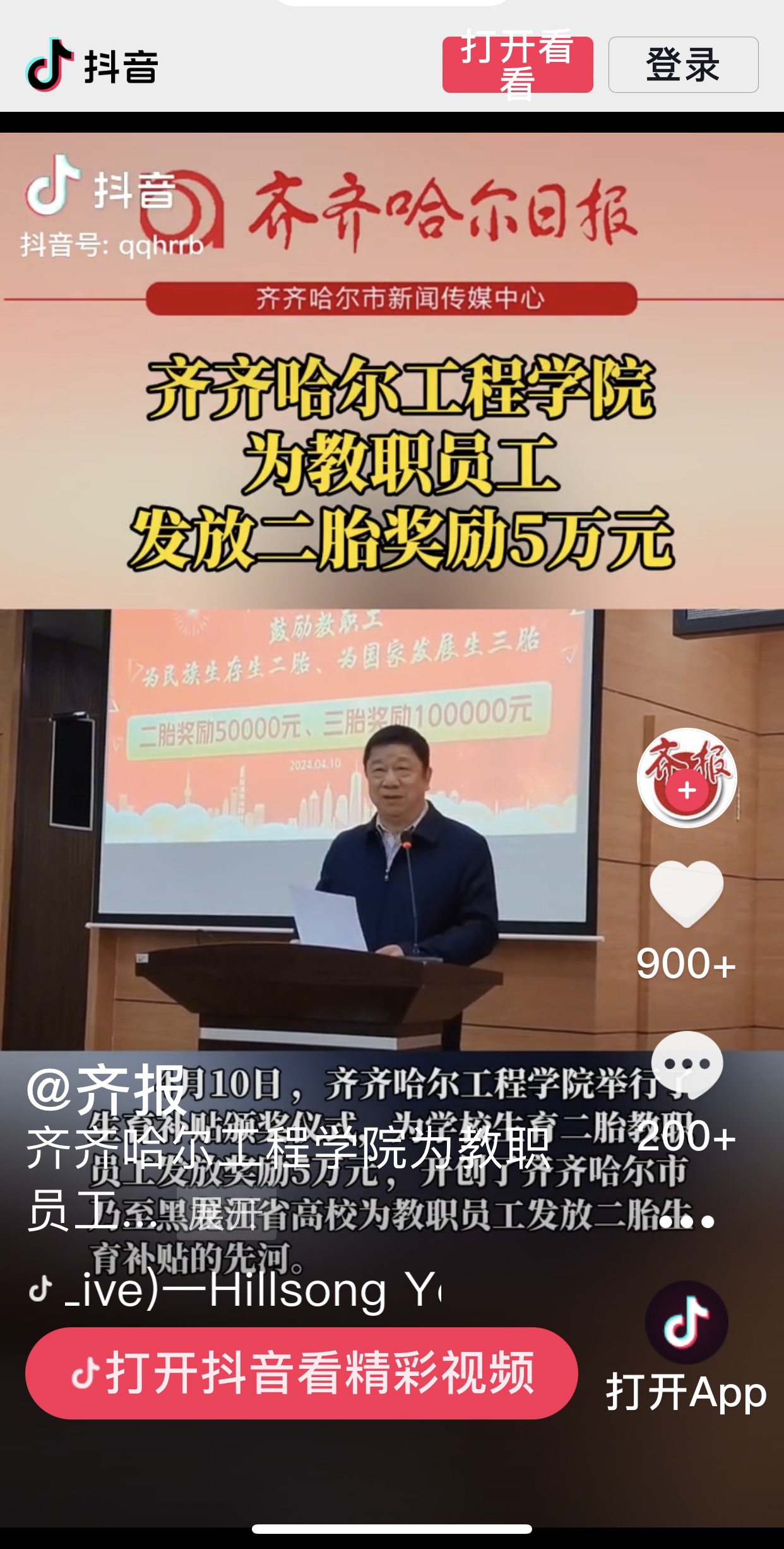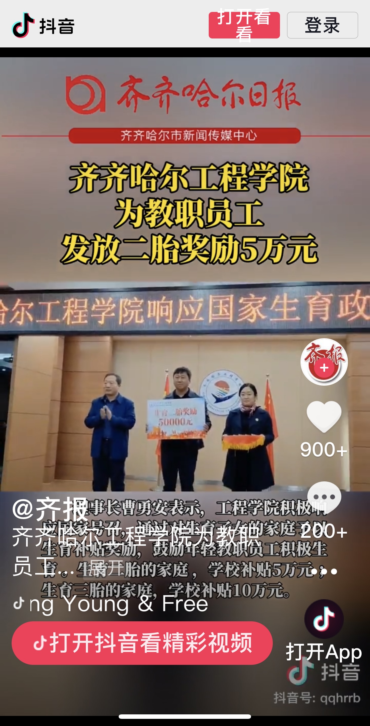 《抖音.齐报》播出开云kaiyun官方网站为教职员工发放二胎奖励5万元视频