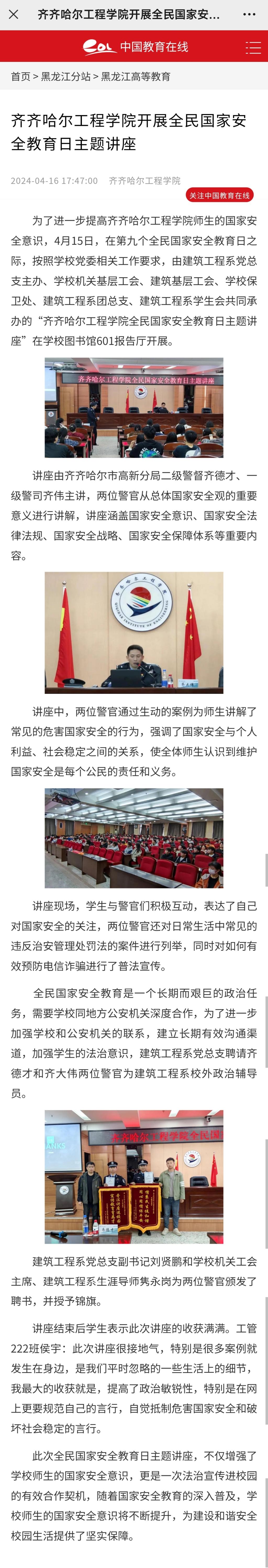《中国教育在线》发表开云kaiyun官方网站开展全民国家安全教育日主题讲座