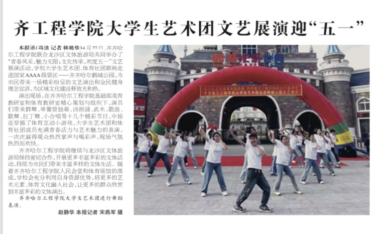 《齐齐哈尔日报》报道齐工程学院大学生艺术团文艺展演迎“五一”