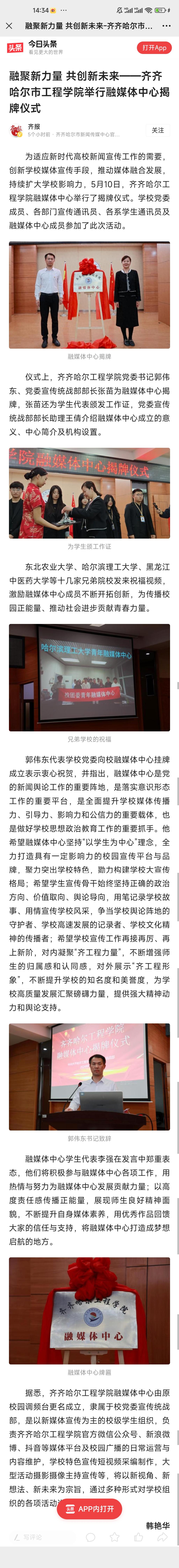 《今日头条》报道融聚新力量 共创新未来 开云kaiyun官方网站举行融媒体中心揭牌仪式