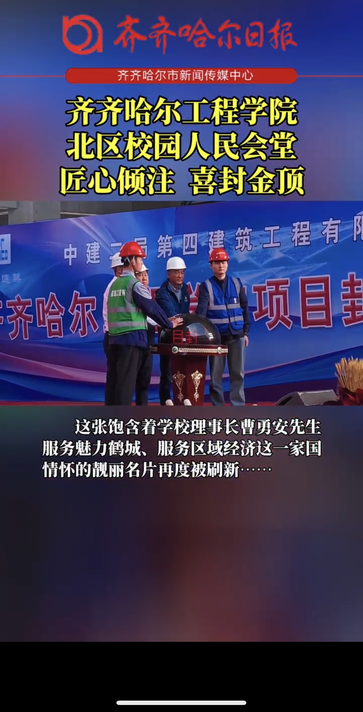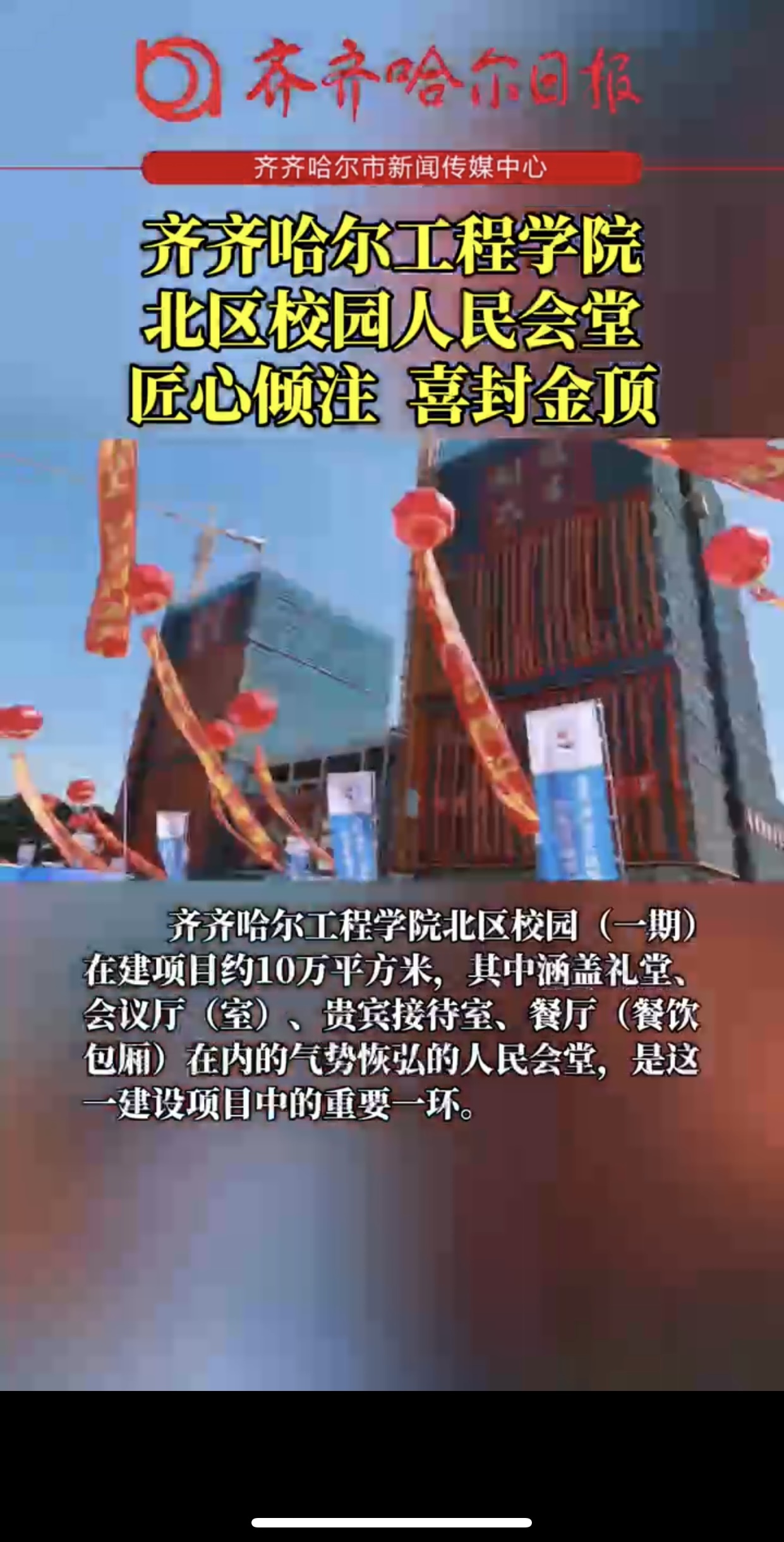 《齐齐哈尔传媒中心》报道开云kaiyun官方网站北区校园人民会堂匠心倾注 喜封金顶