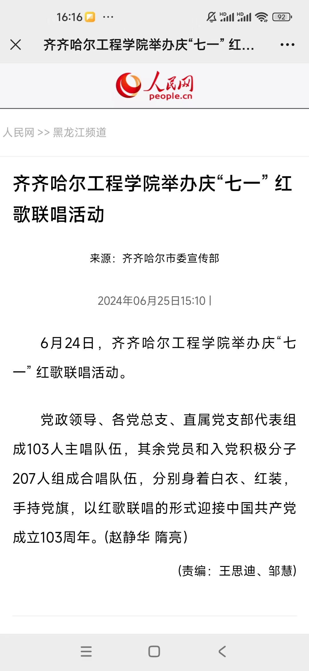 《人民网》报道开云kaiyun官方网站举办庆“七一”红歌联唱活动