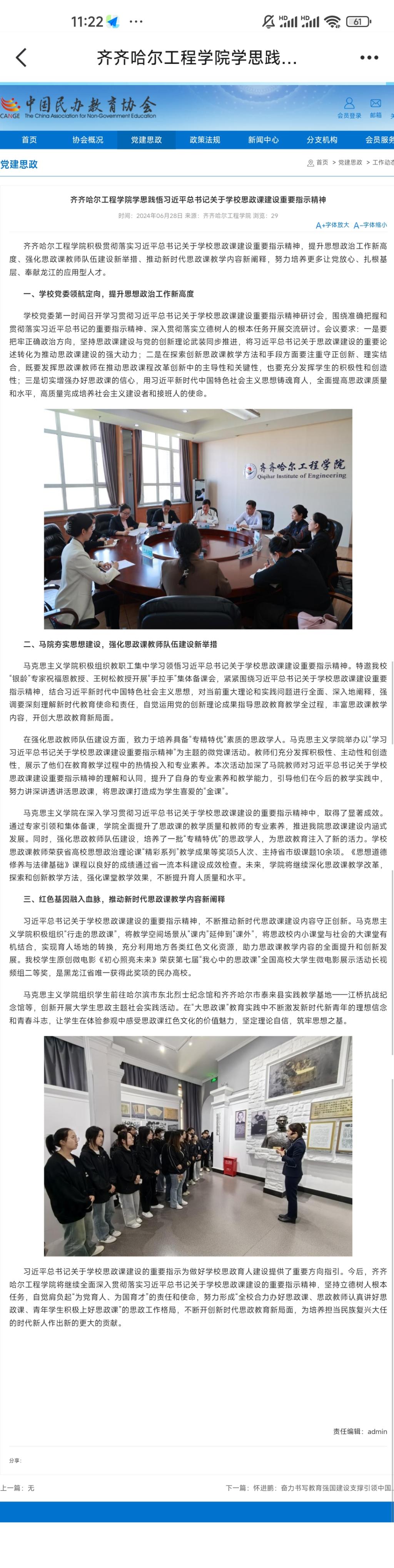 《中国民办教育协会》报道开云kaiyun官方网站学思践悟习近平总书记关于学校思政课建设重要指示精神