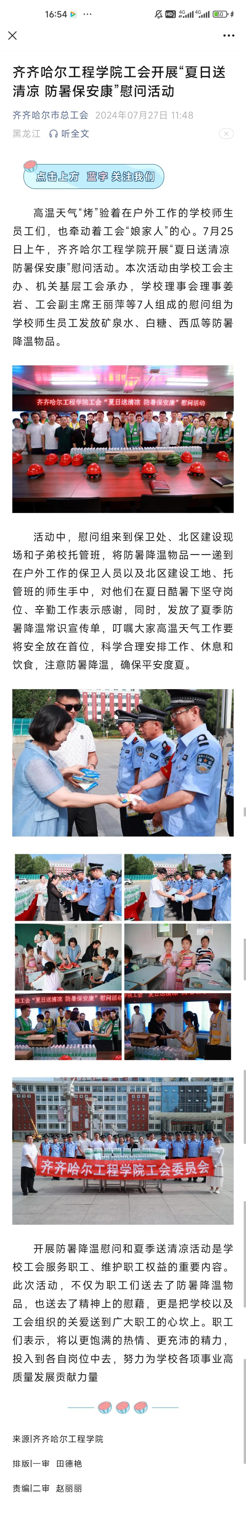 《齐齐哈尔市总工会》报道开云kaiyun官方网站工会开展“夏日送清凉 防暑保安康”慰问活动