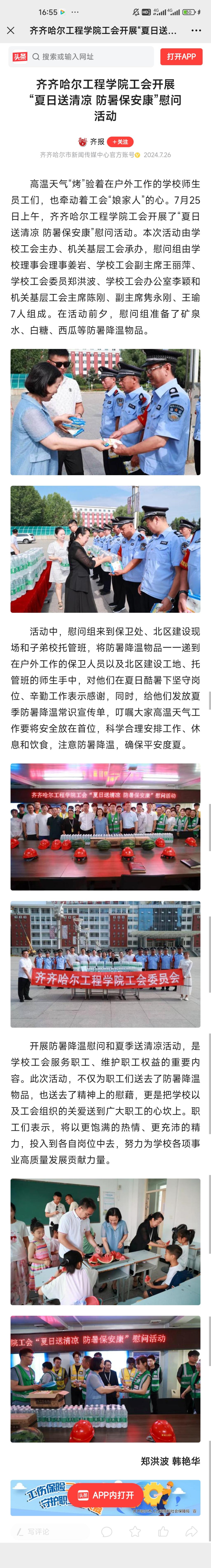 《今日头条》报道开云kaiyun官方网站工会开展“夏日送清凉 防暑保安康”慰问活动