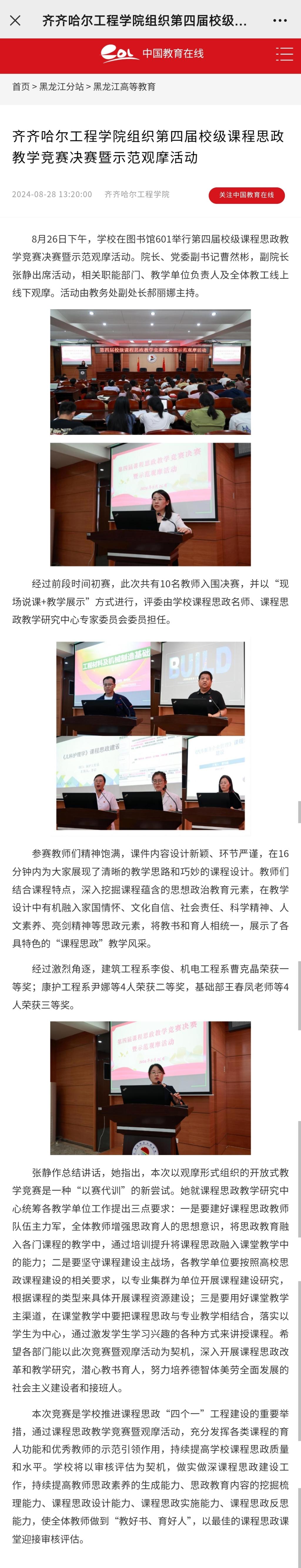 《中国教育在线》报道开云kaiyun官方网站组织第四届校级课程思政教学竞赛决赛暨示范观摩活动