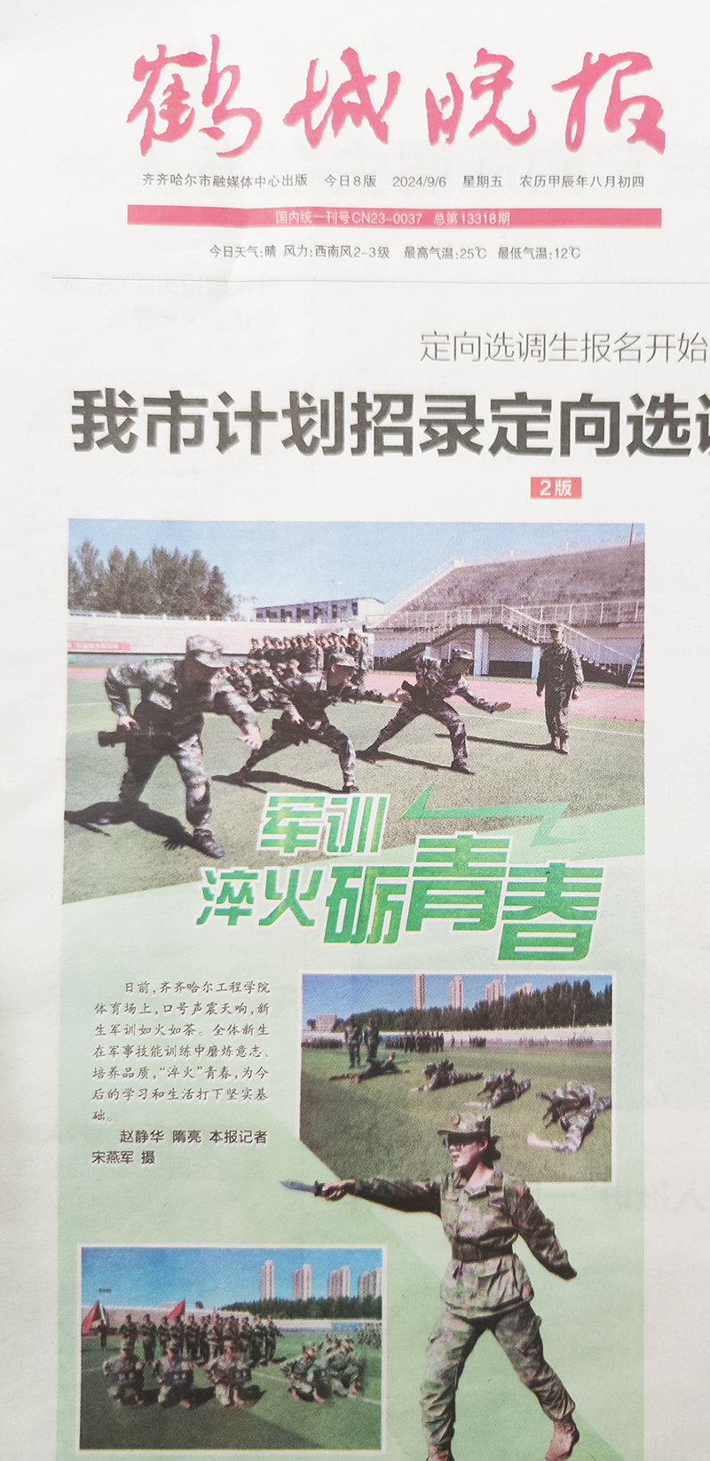 《鹤城晚报》报道军训淬火砺青春
