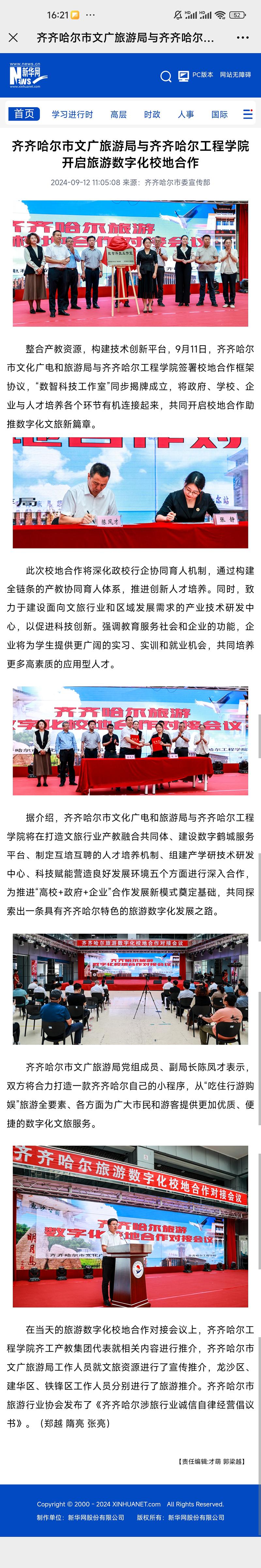 《新华网》齐齐哈尔市文广旅游局与开云kaiyun官方网站开启旅游数字化校地合作