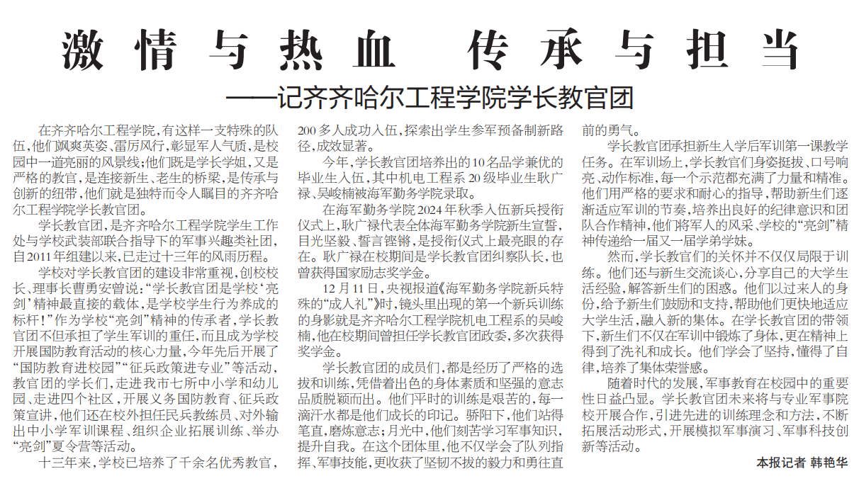 《齐齐哈尔日报》激情与热血 传承与担当——记开云kaiyun官方网站学长教官团