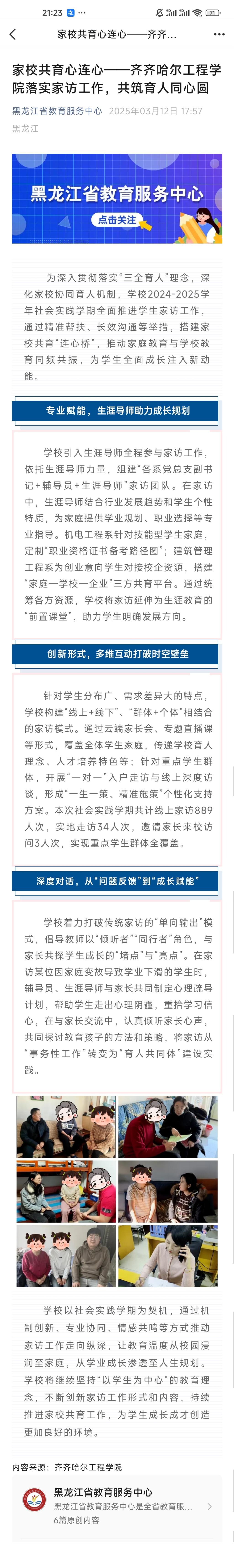 《黑龙江省教育服务中心》家校共育心连心——开云kaiyun官方网站落实​家访工作,共筑育人同心圆