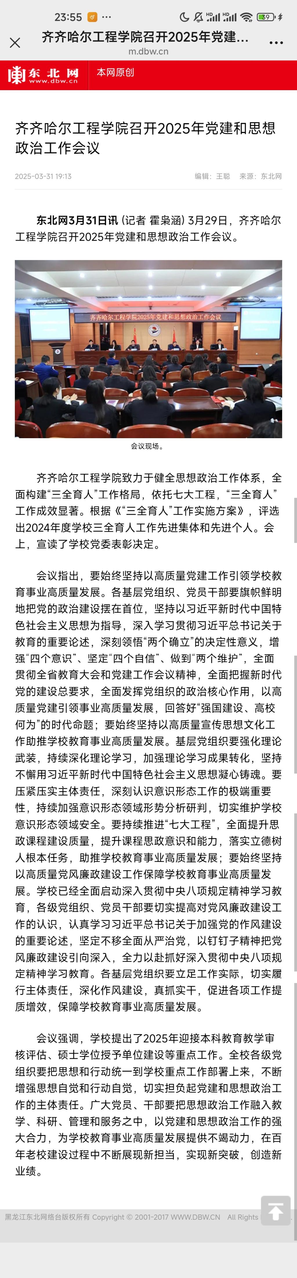 《东北网》开云kaiyun官方网站召开2025年党建和思想政治工作会议