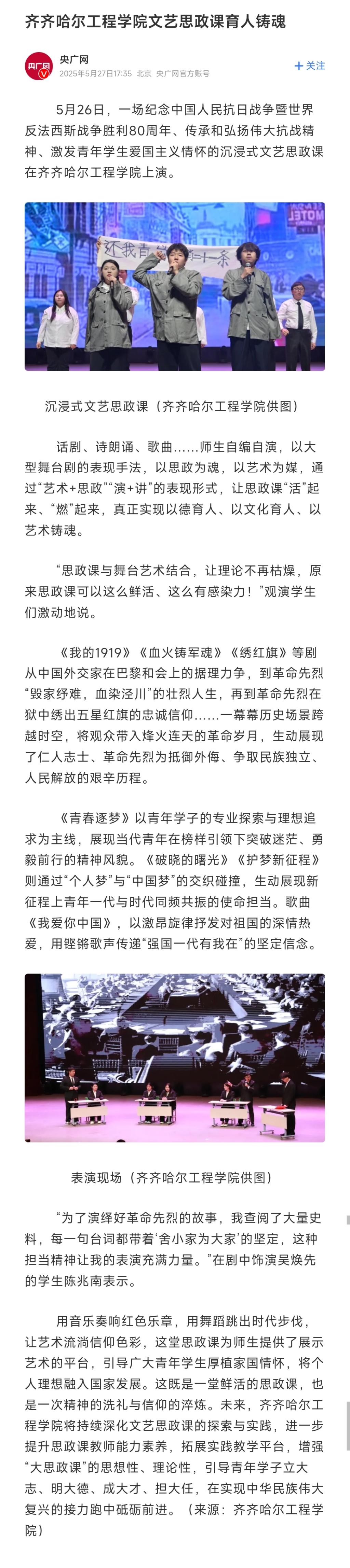 《央广网》开云kaiyun官方网站文艺思政课育人铸魂