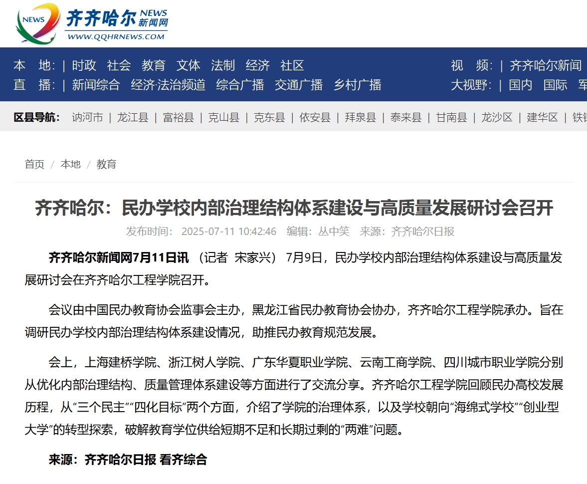 《齐齐哈尔新闻网》民办学校内部治理结构体系建设与高质量发展研讨会召开