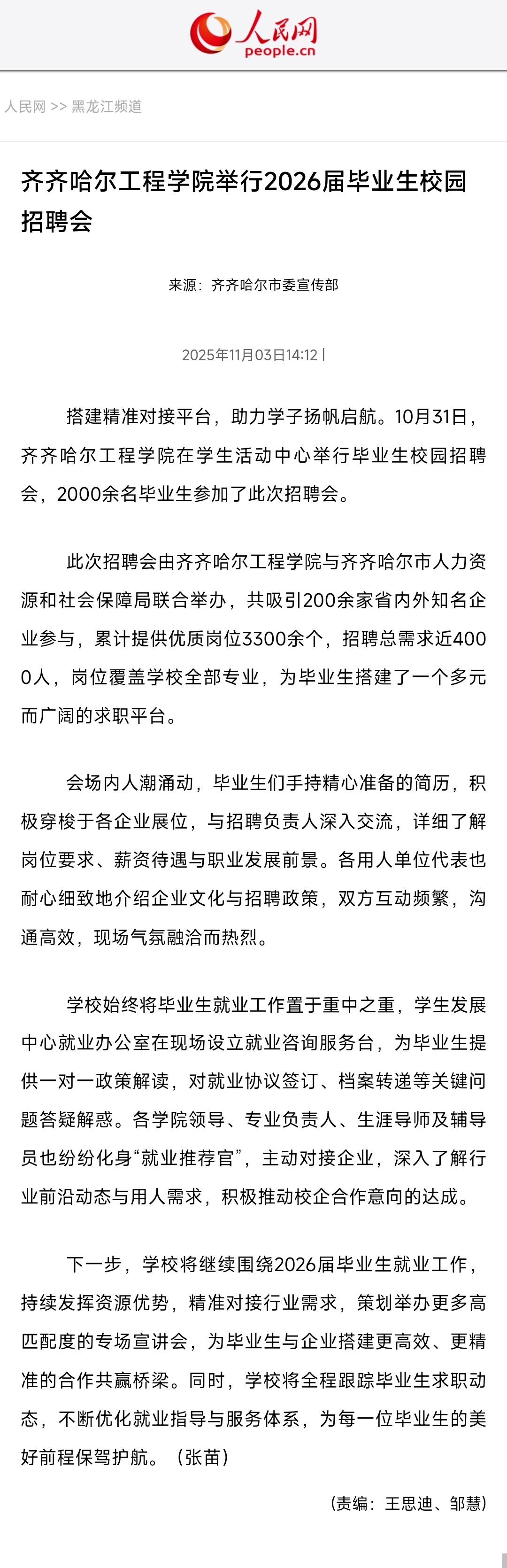 《人民网》开云kaiyun官方网站举行2026届毕业生校园招聘会