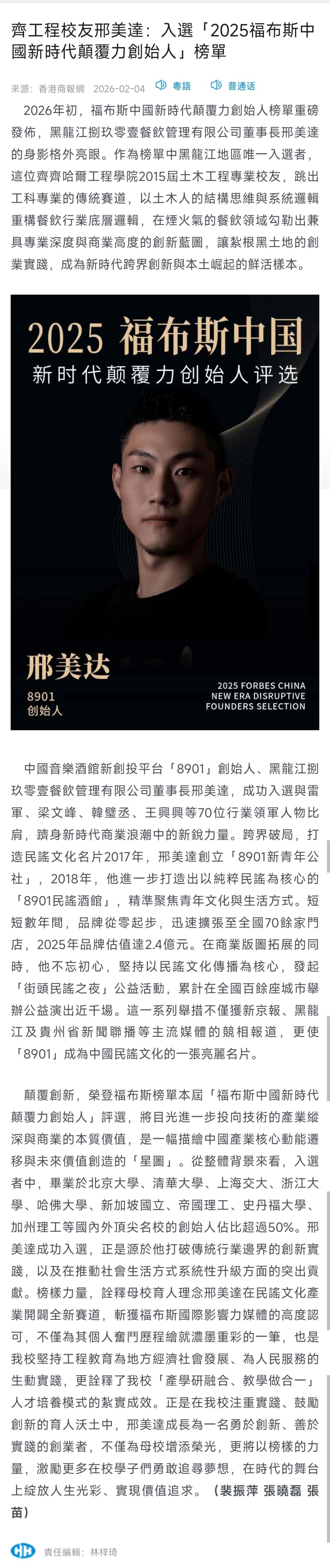 《香港商报网》齐工程校友邢美达:入选“2025福布斯中国新时代颠覆力创始人”榜单