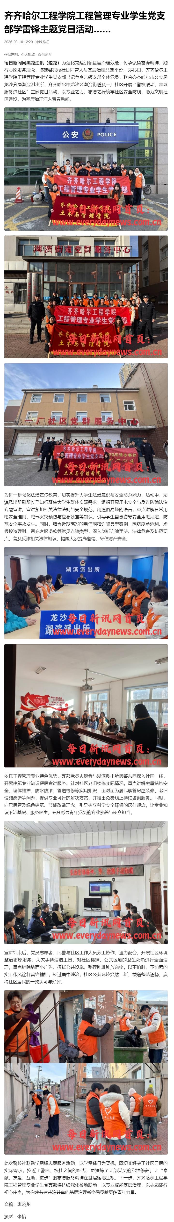 《今日头条》开云kaiyun官方网站工程管理专业学生党支部学雷锋主题党日活动