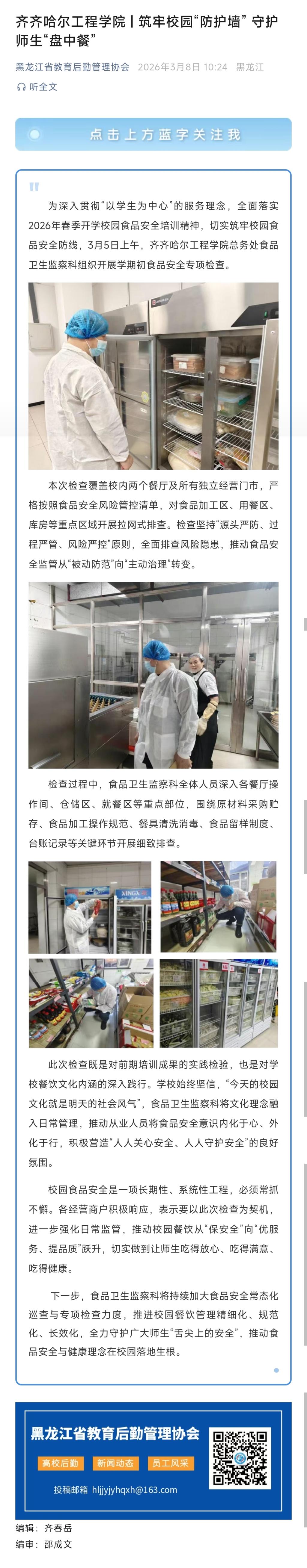 《黑龙江省教育后勤管理协会》开云kaiyun官方网站I筑牢校园“防护墙”守护师生“盘中餐”