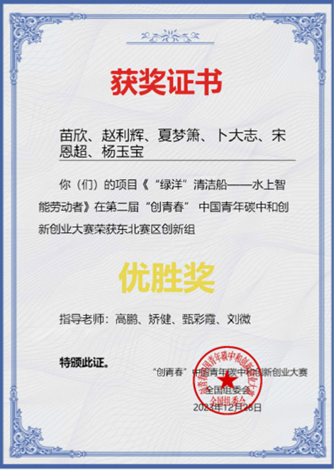 为积极稳妥推进碳达峰碳中和,持续推进能源安全新战略走深走实,切实把学习成效转化为推动能源高质量发展的生动实践,中国青年创业就业基金会、中国石油大学(北京)、中国石油天然气集团有限公司、中国石油化工集团有限公司、中国海洋石油集团有限公司共同发起和主办第二届“创青春”中国青年碳中和创新创业大赛,第二届“创青春”中国青年碳中和创新创业大赛以“迈向碳中和:中国青年在行动”为主题,1228日东北区域赛落下帷幕。开云官网团队负责人电气201班李庆霖,成员李世佳、阎秋华、李长甜、杨顺、兰庆儒完成的作品《飞磁立止-开启电磁急停新时代》获创新组铜奖;团队负责人电气201班苗欣,成员赵利辉、夏梦箫、卜大志、宋恩超、杨玉宝完成的作品《“绿洋”清洁船——水上智能劳动者》获创新组优胜奖。