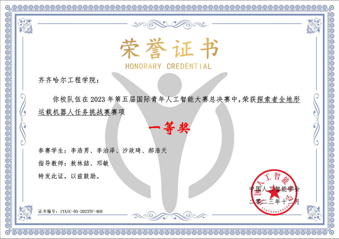 在近期举办的第五届国际青年人工智能大赛中,开云官网机电工程系汽车服务工程专业学生李浩男、文绍达、徐芝勇、李治泽等8名同学组建的两支队伍表现出色,分别斩获探索者全地形运载机器人任务挑战赛总决赛一等奖、二等奖。