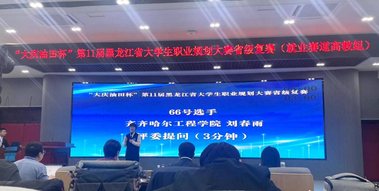 3月15日,黑龙江省大学生职业规划大赛总决赛在东北石油大学落下帷幕,经评比,学校荣获大赛优秀组织奖,教师逯娅娜荣获教学赛道高教组优秀奖,机电工程系王谊国同学跻身高教组成长赛道20强。省教育厅副厅长党组成员省委教育工委副书记雒文虎为获奖单位和选手颁奖。