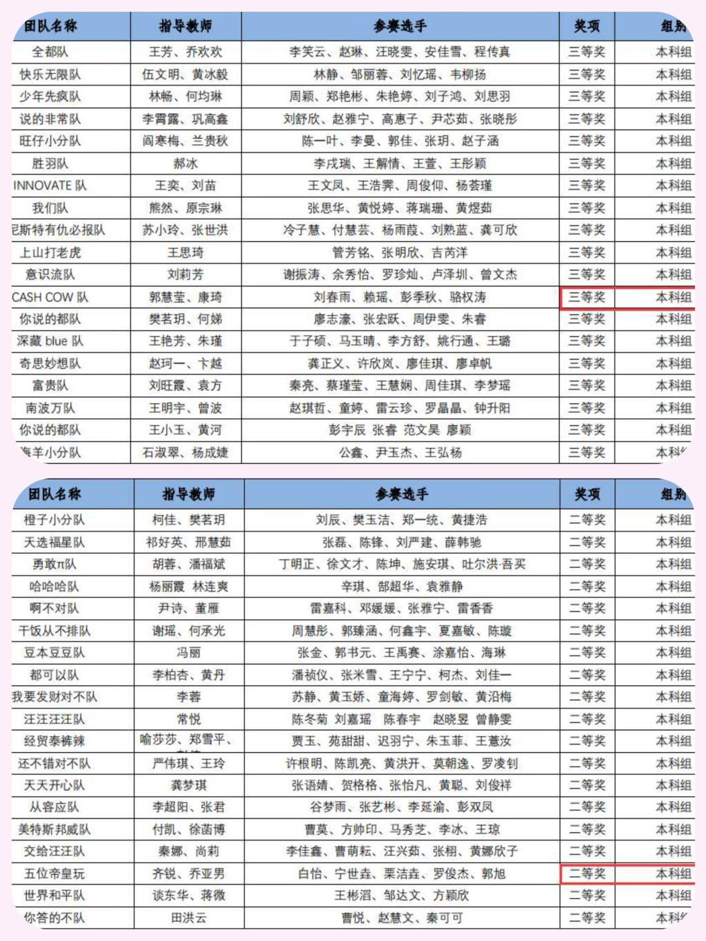 学生获奖公示