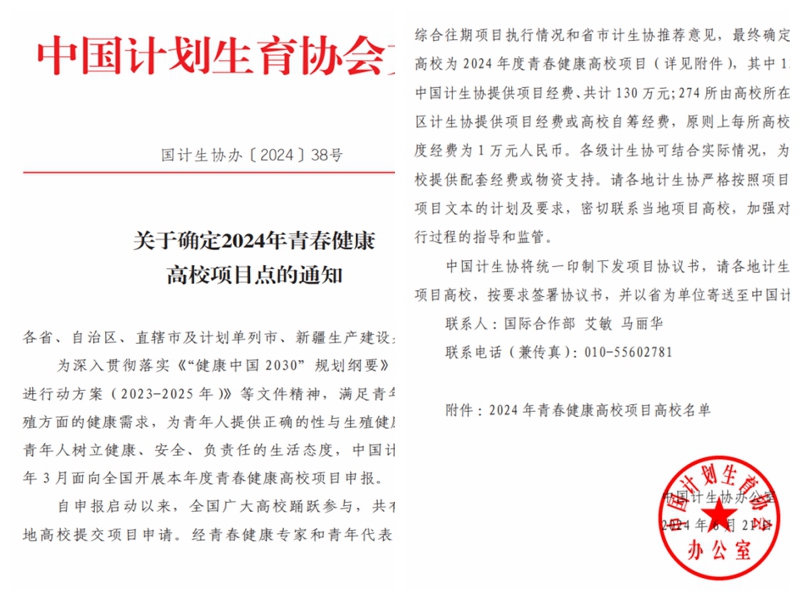 近日,中国计划生育协会发布《关于确定2024年青春健康高校项目点的通知》,学校团委申报的“以青春为浆,赴健康之约”青春健康项目在众多高校中脱颖而出,成功入选中国计划生育协会2024年全国高校青春健康项目,并提供专项经费支持。这是开云官网第1个全国大学生青春健康高校项目,此前的2020年,此项目开云官网已成功申报省级青春健康项目并结项。