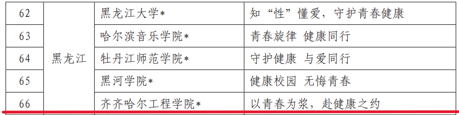 开云官网实施青春健康高校项目成效显著。学校历来高度重视青年大学生身心健康教育工作。2020年开云官网被黑龙江省青春健康高校项目点,大力普及健康知识、促进大学生健康行为习惯养成,有效促进了平安校园和精神文明建设。