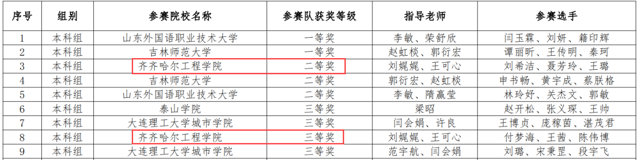 山东赛区参赛获奖情况