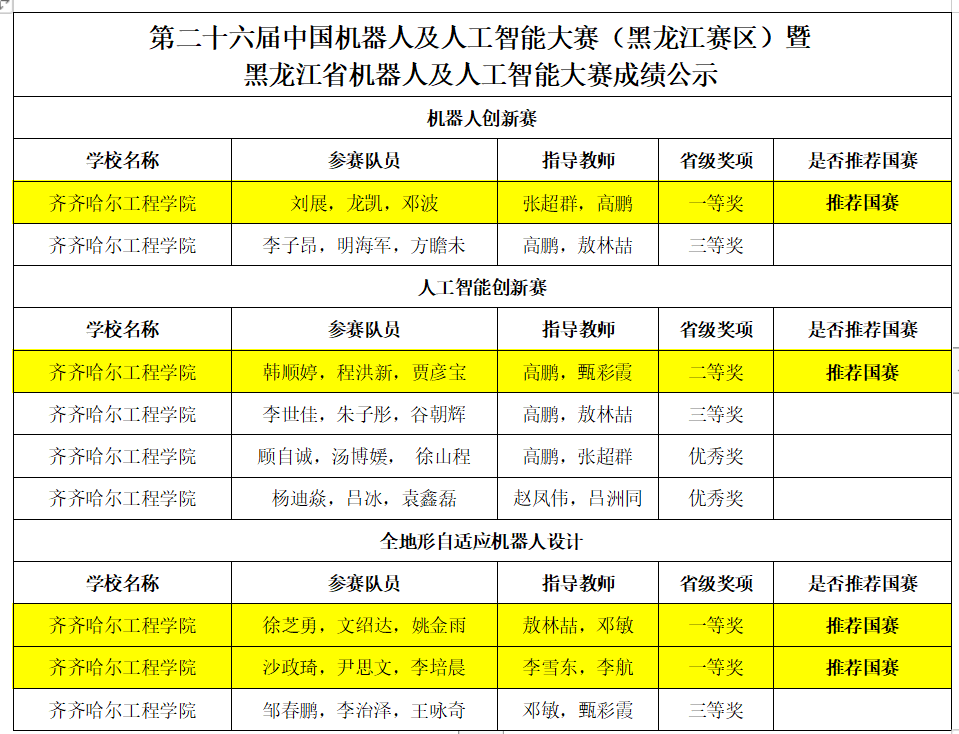 7月2日,第二十六届中国机器人及人工智能大赛(黑龙江赛区)暨第七届黑龙江省机器人及人工智能大赛比赛结果公布:开云官网机电工程系学生共斩获一等奖3项、二等奖1项、三等奖3项、优秀奖2项。